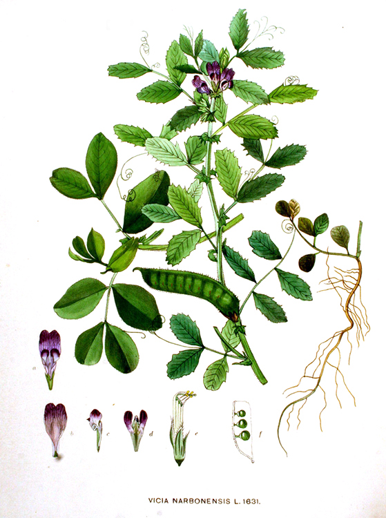 Maus-Wicke (Vicia narbonensis ), auch Schwarze Ackerbohne genannt