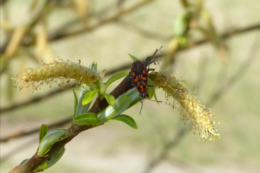 Firma Panasonic Modell DMC-FZ150 Belichtungszeit 1/1000 ISO-Empf. 400 Blendenzahl 5.6 Brennweite 19.7 BilddetailsBeschreibung Lavendel-Weide (Salix eleagnos) mit Gemeiner Feuerwanze (Pyrrhocoris apterus) Fotograf © Petra Wörle Datum 22.04.2015, Uhrzeit: 10:56 Uhr Ort Augsburg (Lechauen) Copyright Petra Wörle (email) Dateiname P1580947LavendelWeide1.jpg Lavendel-Weide (Salix eleagnos) mit Gemeiner Feuerwanze (Pyrrhocoris apterus) -