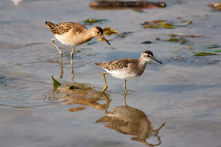 Firma Canon Modell Canon EOS-1D Mark II N Belichtungszeit 1/1250 ISO-Empf. 400 Objektiv EF500mm f/4L IS USM +2.0x Blendenzahl 8 Brennweite 1000 BilddetailsBeschreibung vorne: Bruchwasserläufer (Tringa glareola), hinten: Kampfläufer (Philomachus pugnax, künftig Calidris pugnax) Fotograf © Gunther Hasler Datum 24.09.2014, Uhrzeit: 16:22 Uhr Ort Moosburger Stauseen Copyright 2014 Gunther Hasler (email) (www) Dateiname 601_8038-Bruchwasserlaeufer-und-Kampflaeufer.jpg vorne: Bruchwasserläufer (Tringa glareola), hinten: Kampfläufer (Philomachus pugnax, künftig Calidris pugnax) -