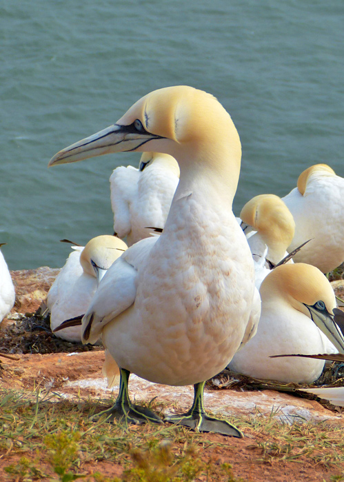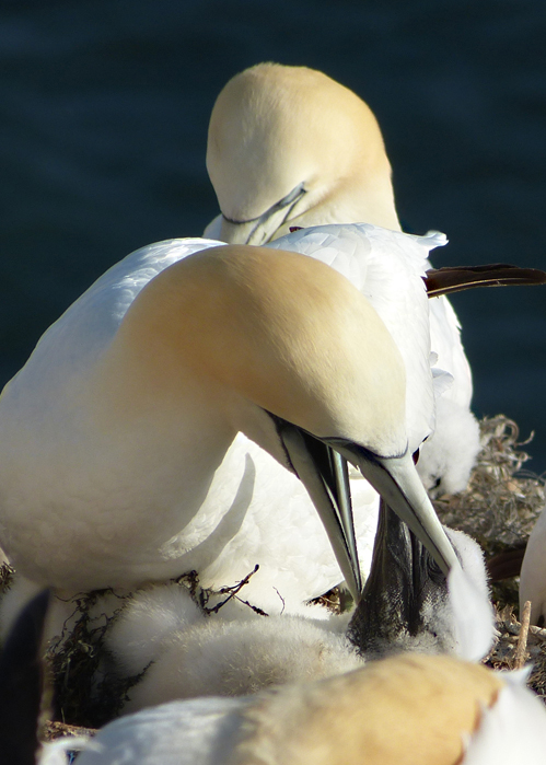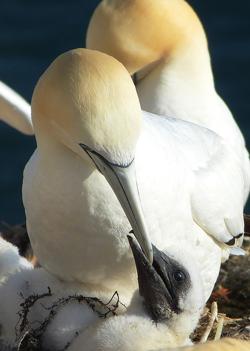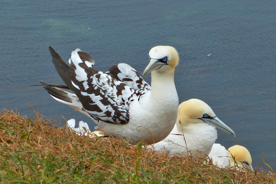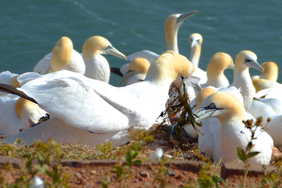 Firma Panasonic Modell DMC-FZ150 Belichtungszeit 1/2000 ISO-Empf. 100 Blendenzahl 3.8 Brennweite 34.6 Basstölpel (Morus bassanus) PK, Balzgeschenk -