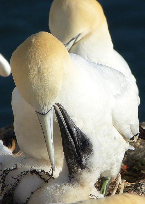 Firma Panasonic Modell DMC-FZ150 Belichtungszeit 1/1600 ISO-Empf. 100 Blendenzahl 4.5 Brennweite 88.2 Basstölpel (Morus bassanus) pull. bettelt nach Futter -