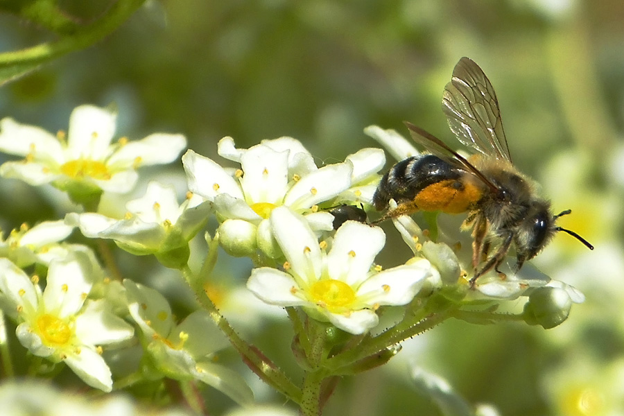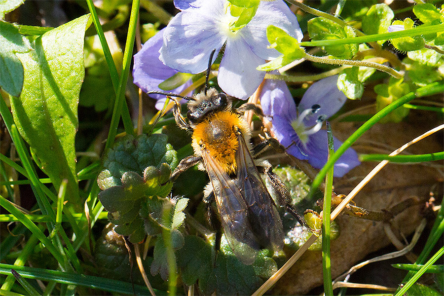 vgl. Gemeine Sandbiene (cf. Andrena flavipes), M, auf Gänseblümchen (Bellis perennis)259 K -
