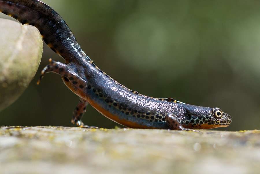 Der Bergmolch (Ichthyosaura alpestris), auch Alpenmolch genannt, gehört zur Ordnung der Schwanzlurche. Er ist besonders geschützt (BNatSchG), aber in Bayern derzeit ungefährdet. Allerdings schwinden seine Bestandszahlen durch Zerstörung von Kleingewässern, hohem Fischbesatz in Laichgewässern oder Trockenlegung von Feuchtwiesen. Der Bergmolch lebt in gewässerreichen Wäldern in hügeligen bis bergigen Landschaften, aber auch in Parks und naturnahen Gärten.