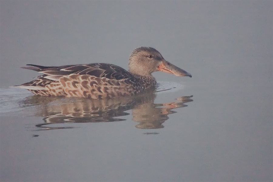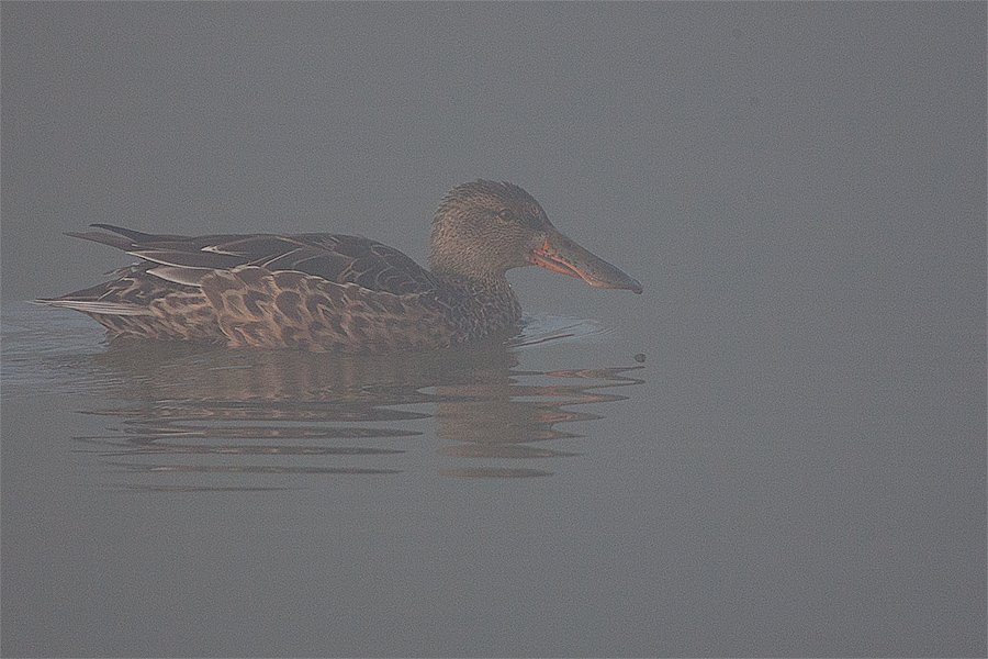 Firma Canon Modell Canon EOS-1D Mark II N Belichtungszeit 1/400 ISO-Empf. 320 Objektiv EF500mm f/4L IS USM +2.0x Blendenzahl 8 Brennweite 1000 BilddetailsBeschreibung Löffelente (Anas clypeata), Weibchen, im Morgen-Nebel Fotograf © Gunther M. Hasler Datum 13.09.2007, Uhrzeit: 08:16 Uhr Ort Altmühlsee Copyright © 2007 Gunther M. Hasler Dateiname 702_9539-Loeffelente-W.jpg Löffelente (Anas clypeata), Weibchen, im Morgen-Nebel -