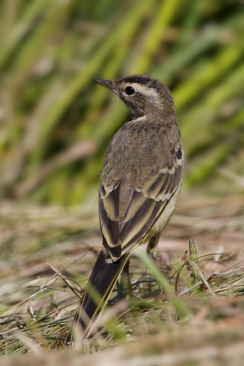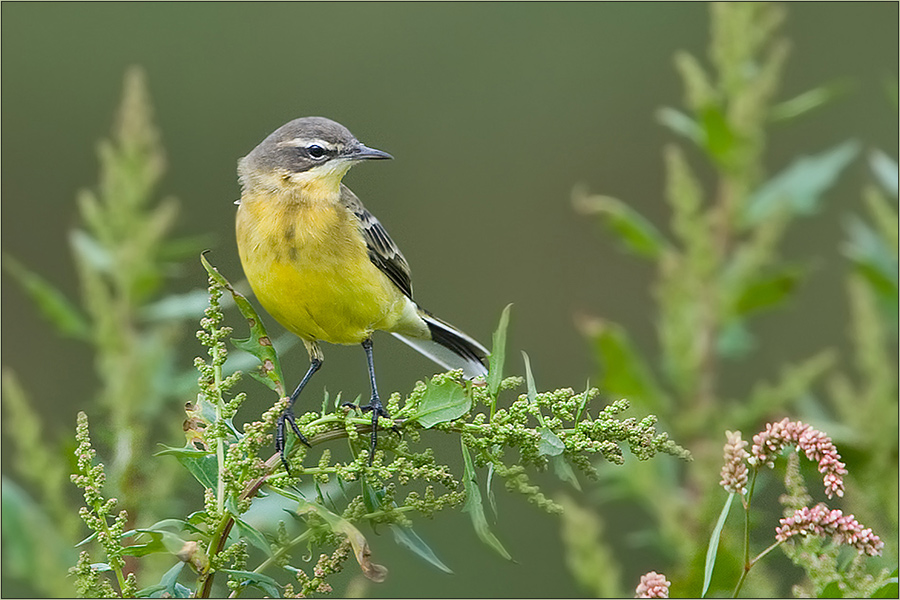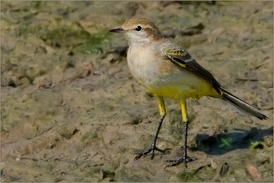Die Wiesenschafstelze Motacilla flava flava, die heimische Unterart, sie ist im westlichen Mitteleuropa zu finden ist, hat einen blaugräulichen Kopf mit weißem Überaugenstreif.