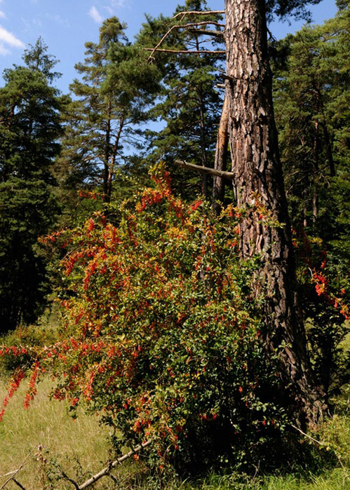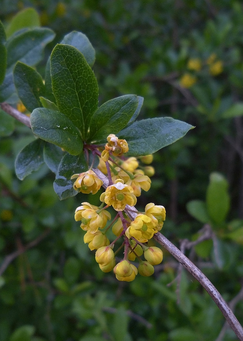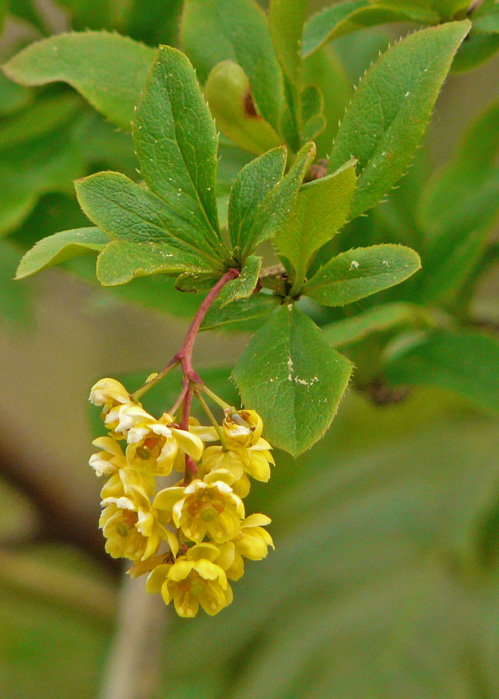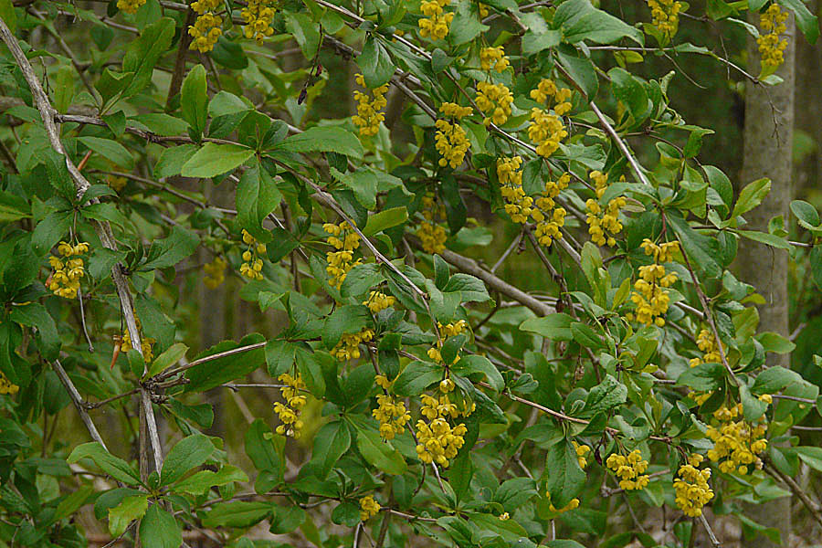Die Gewöhnliche Berberitze (Berberis vulgaris) ist ein 2-3 m hoher Strauch, der in Wälder vorkommt. Wird auch als Sauerdorn bezeichnet.