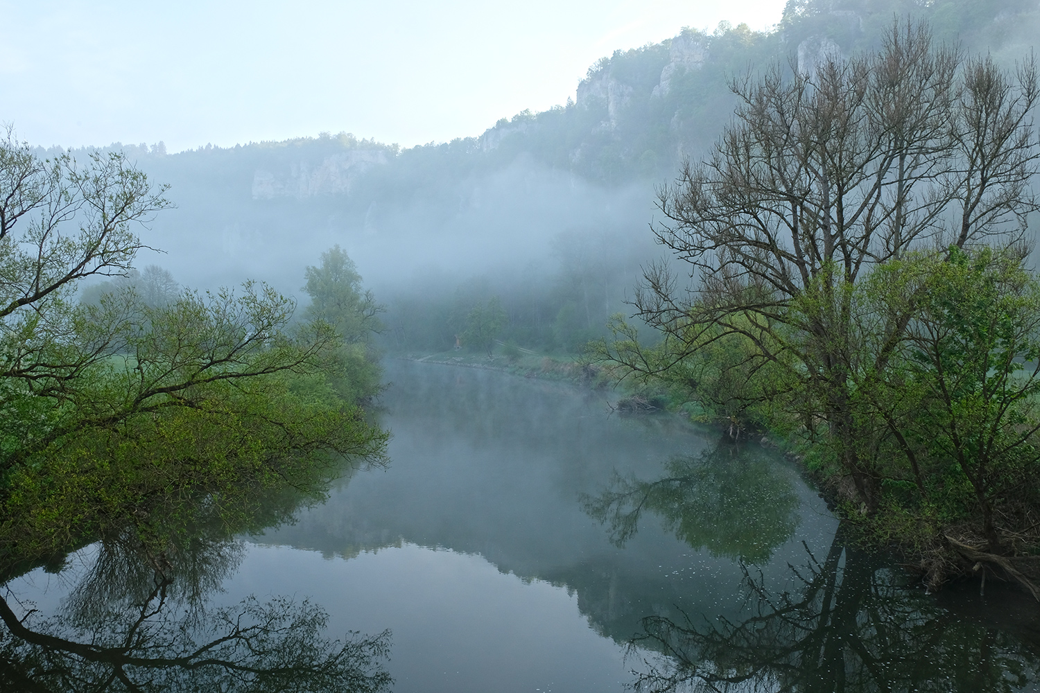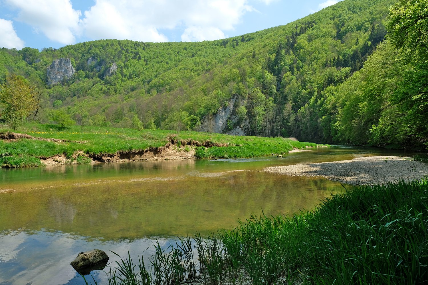 8) Donaudurchbruch bei Beuron, Donau mit gespiegelter Felsformation, 09.05.2022, © Eberhard Pfeuffer