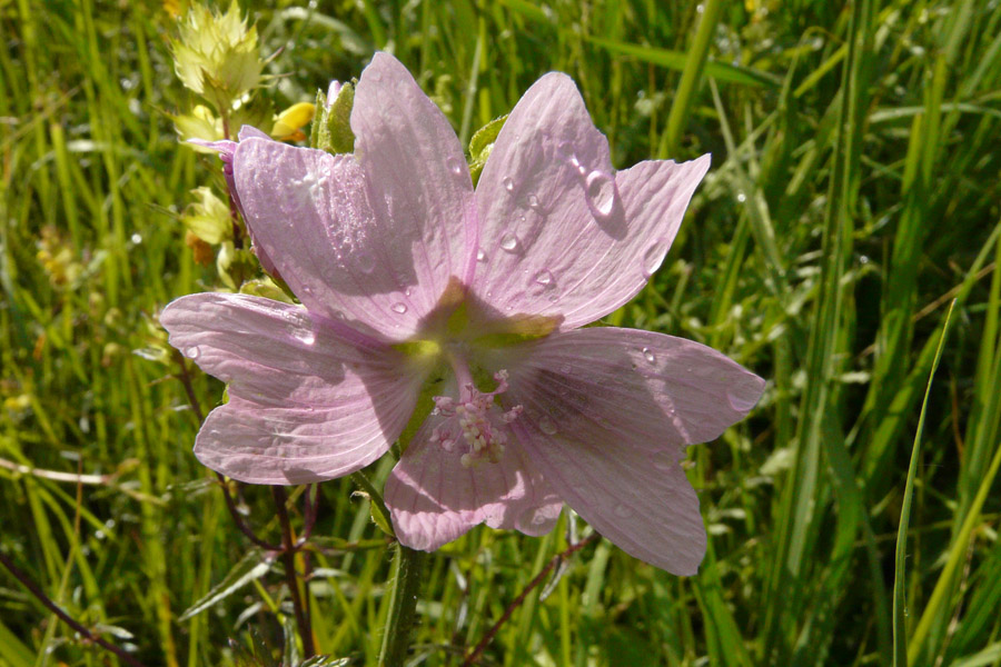 Die Moschusmalve (Malva moschata) ist ähnlich wie die Rosen-Malve, aber kleiner. Sie erreicht ein Höhe von 20-50 cm und sie blüht von Juni bis Sept.