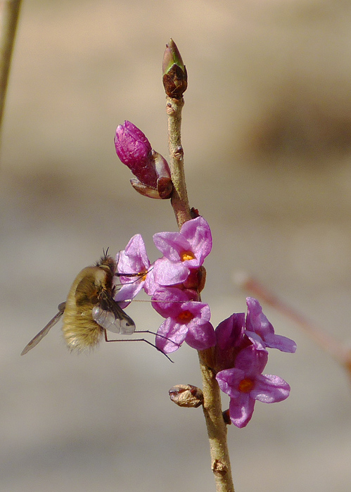 Firma Panasonic Modell DMC-FZ150 Belichtungszeit 1/640 ISO-Empf. 100 Blendenzahl 3.6 Brennweite 25.4 BilddetailsBeschreibung Seidelbast (Daphne mezereum) mit Großer Wollschweber (Bombylius major) Fotograf © Petra Wörle Datum 18.03.2015, Uhrzeit: 14:13 Uhr Ort Augsburg (Stadtwald) Copyright Petra Wörle (email) Dateiname P157055GrosserWollschweber1.jpg Seidelbast (Daphne mezereum) mit Großer Wollschweber (Bombylius major) -