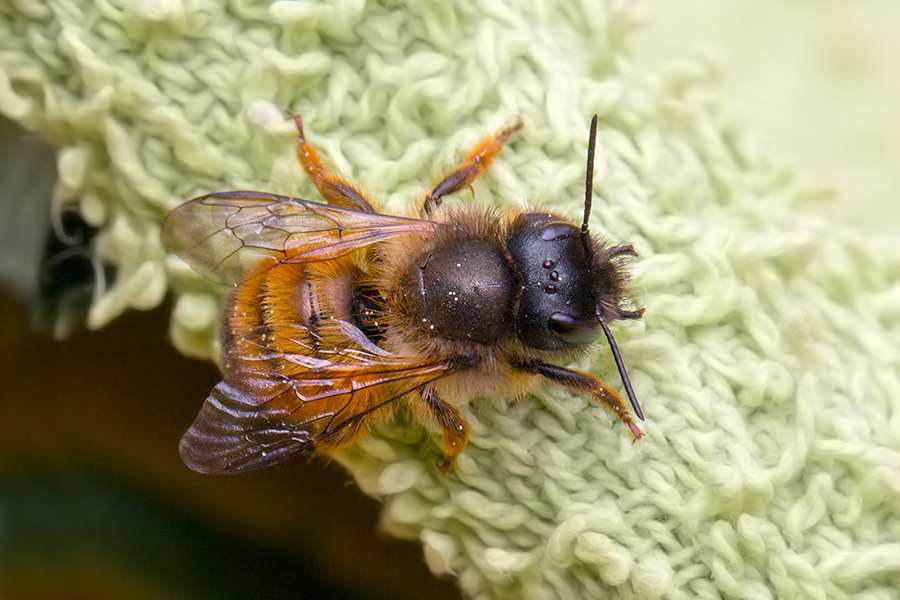 Firma Canon Modell Canon EOS 60D Belichtungszeit 1/400 ISO-Empf. 800 Objektiv EF100mm f/2.8L Macro IS USM Blendenzahl 11 Brennweite 100 Rote Mauerbiene (Osmia bicornis) mit Milbenbefall -