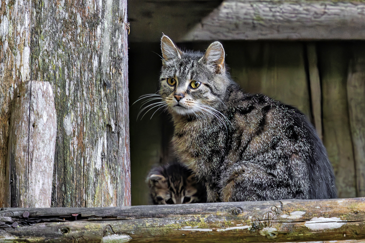 BilddetailsBeschreibung Europäische Wildkatze (Felis silvestris), Weibchen und Jungtier Fotograf © Horst Jetter Datum 10.06.2023, Uhrzeit: 06:33 Uhr Ort Kösingen,, Ries (Forst Fürst Wallerstein) Copyright Horst Jetter (email) Dateiname _V9A6303-Verbessert-RR-Bearbeitet-2-PS.jpg Europäische Wildkatze (Felis silvestris), Weibchen und Jungtier -