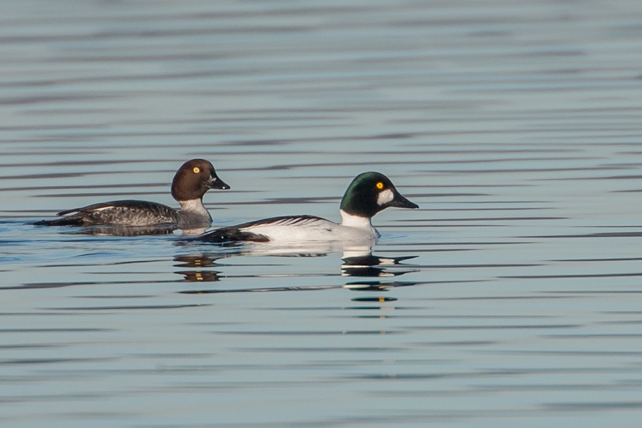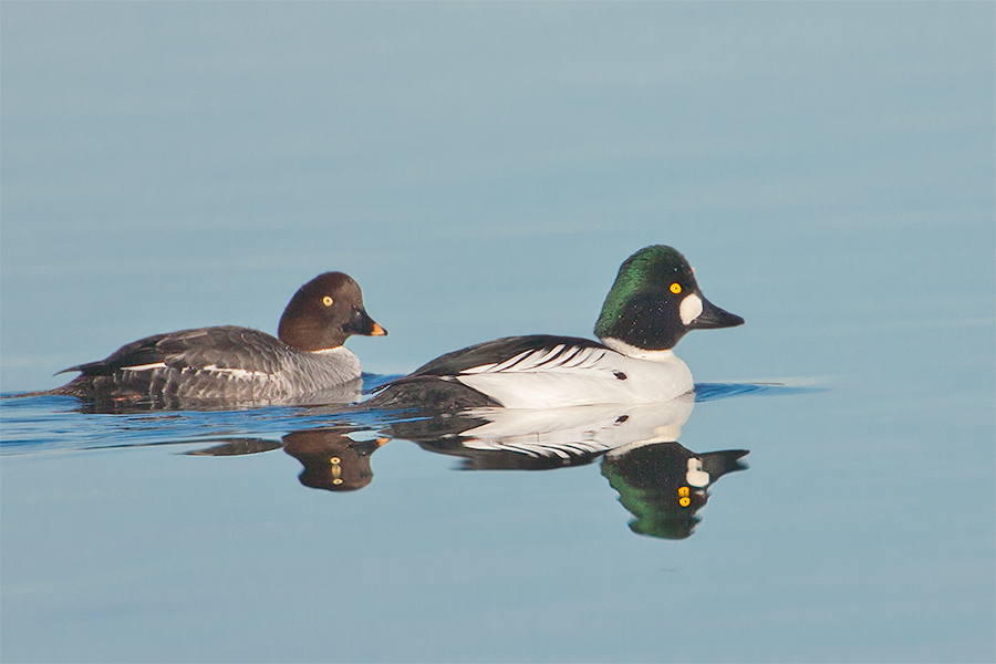 Firma Canon Modell Canon EOS-1D Mark II N Belichtungszeit 1/1250 ISO-Empf. 400 Objektiv EF500mm f/4L IS USM +2.0x Blendenzahl 8 Brennweite 1000 Schellente (Bucephala clangula), Weibchen (li) und Männchen (re) -