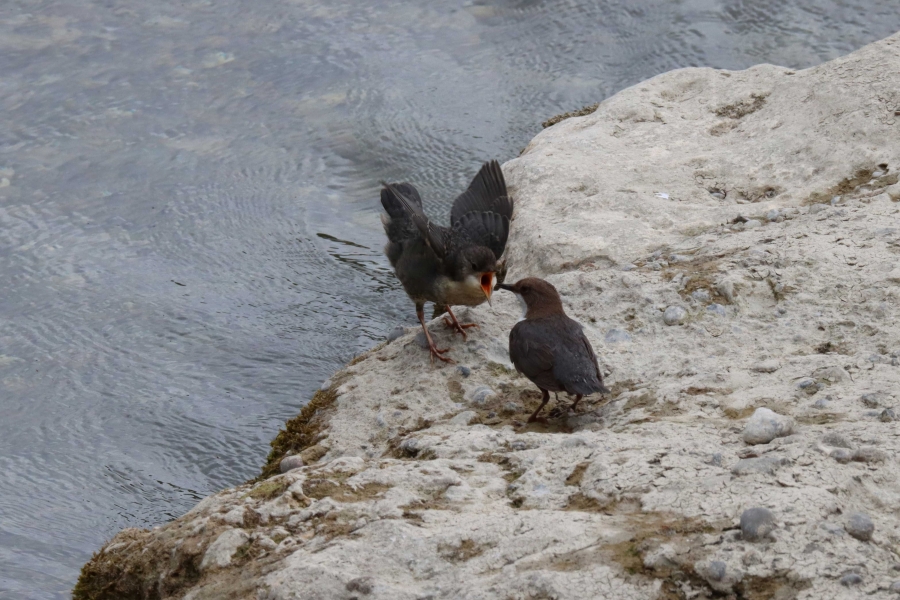 Wasseramsel 2 adult, 2 Jungvögel