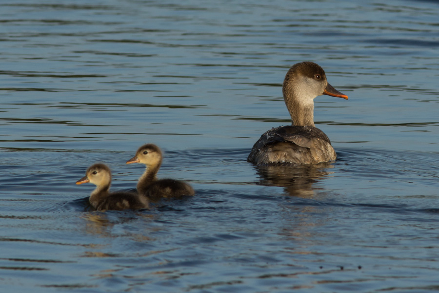 Kolbenente   2 Weibchen mit 1 (~5 Wo) und 4 pulli (~2Tage)