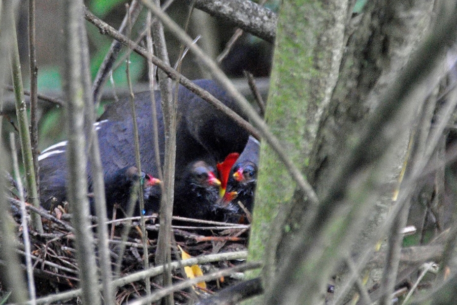 Teichhuhn Brutpaar mit 4 Pulli